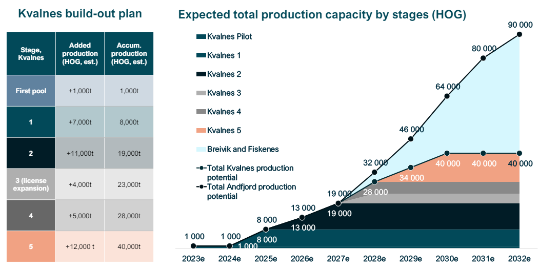 Som chartet under viser, er dagens produksjon kun 1.000 tonn. At dette ikke monner vet selvfølgelig selskapet, og har derfor lagt opp til en forholdsvis bratt vekstkurve i årene som kommer: